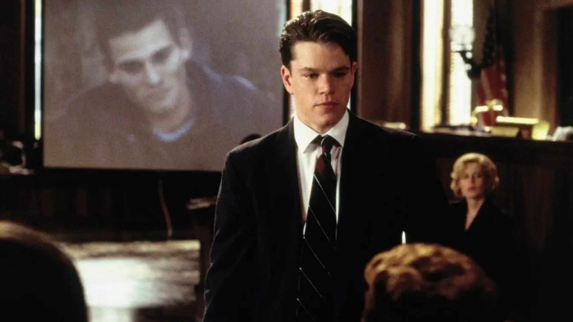 Cet Idéaliste de John Grisham situe Coppola version 98 dans la descendance behavioriste et glaciale d’Otto Preminger et de son Autopsie d’un meurtre. On y voit, à Memphis, un jeune avocat, Rudy Baylor (Matt Damon), intégrer son premier boulot dans un cabinet miteux dirigé par un affairiste à gourmette, Bruiser Stone (Mickey Rourke), toujours à deux doigts de la cabane. Là, Rudy fait équipe avec Deck Shifflet (Danny DeVito) qui a raté neuf fois l’examen du barreau mais n’en demeure pas moins un enquêteur de terrain avisé. L’impétrant va mener de front trois dossiers, dont un, de plus en plus juteux, l’oppose à une puissante compagnie d’assurances, Great Benefit, traînée en justice par la famille Black dont le fils Dot agonise d’une leucémie faute d’obtenir l’aide financière à laquelle il a droit. L’essentiel du film se concentre sur le procès lui-même, entrecoupé d’épisodes adjacents sur les démêlés d’une vieille dame avec ses enfants qu’elles veut déshériter, et surtout d’une femme battue, Kelly Riker, dont Rudy tombe amoureux. La modestie d’ensemble des arguments, la clarté éloquente de chacune de ses séquences, l’art consommé des ellipses et des enchaînement qui s’y déploie n’empêchent pas L’Idéaliste d’exhaler une odeur de boucherie très contemporaine."